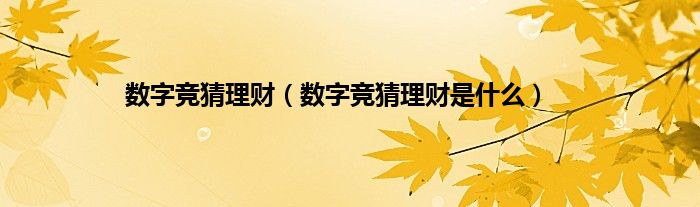 大家好,小常来为大家解答以上问题。数字竞猜理财,数字竞猜理财是什么很多人还不知道,现在让我们一起来看看吧!