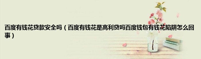 大家好,小常来为大家解答以上问题。百度有钱花贷款安全吗,百度有钱花是高利贷吗百度钱包有钱花陷阱怎么回事很多人还不知道,现在让我们一起来看看吧!