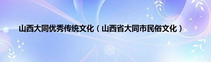 大家好,小常来为大家解答以上问题。山西大同优秀传统文化,山西省大同市民俗文化很多人还不知道,现在让我们一起来看看吧!