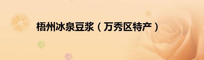 大家好,小常来为大家解答以上问题。梧州冰泉豆浆,万秀区特产很多人还不知道,现在让我们一起来看看吧!