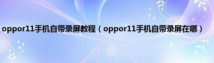 最佳答案大家好,小常来为大家解答以上问题。oppor11手机自带录屏教程,oppor11手机自带录屏在哪很多人还不知道,现在让我们一起来看看吧!1、oppo r11没有自带录屏软件,可下载第三方录屏软件使用。2、OPPO R11是OPPO公司于2017年6月10日发布的拍照智能手机。本文到此结束,希望对大家有所帮助。