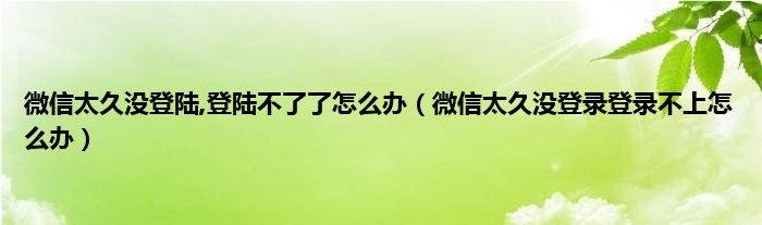 微信太久没登陆,登陆不了了怎么办(微信太久没登录登录不上怎么办)