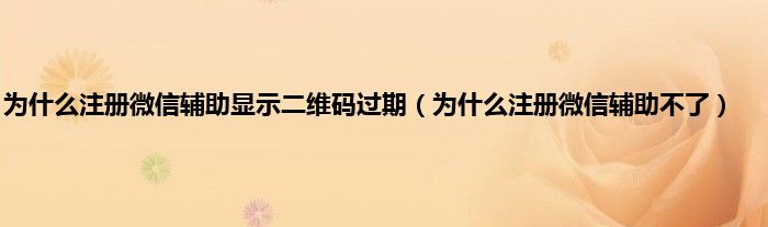 大家好,小常来为大家解答以上问题。为什么注册微信辅助显示二维码过期,为什么注册微信辅助不了很多人还不知道,现在让我们一起来看看吧!