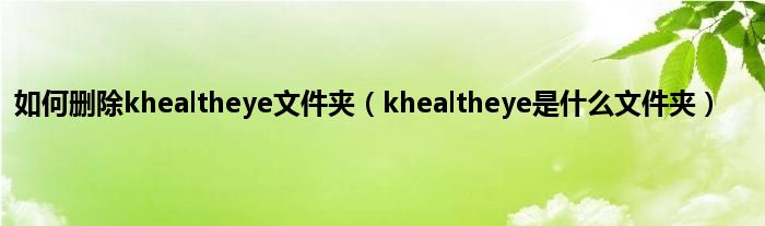 大家好,小常来为大家解答以上问题。如何删除khealtheye文件夹,khealtheye是什么文件夹很多人还不知道,现在让我们一起来看看吧!