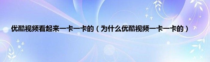 优酷视频看起来一卡一卡的(为什么优酷视频一卡一卡的)