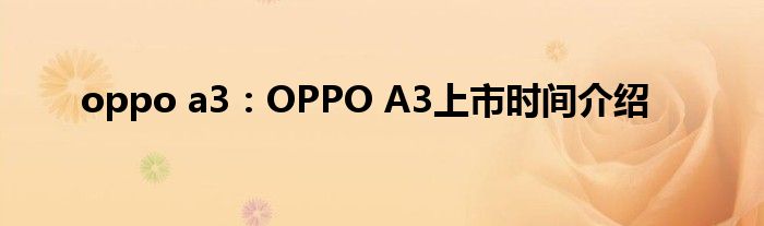 现在大家使用手机的频率越来越频繁,手机也为我们提供了许多的便利,今天小编也来说一下这个oppo a3:OPPO A3上市时间介绍相关的文章,这个操作其实不复杂,接下来就给大家介绍一下oppo a3:OPPO A3上市时间介绍,一起来看看吧: