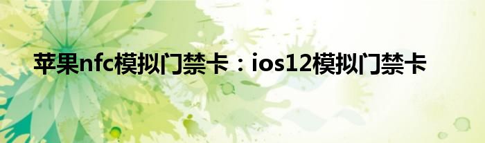 现在大家使用手机的频率越来越频繁,手机也为我们提供了许多的便利,今天小编也来说一下这个苹果nfc模拟门禁卡:ios12模拟门禁卡相关的文章,这个操作其实不复杂,接下来就给大家介绍一下苹果nfc模拟门禁卡:ios12模拟门禁卡,一起来看看吧:
