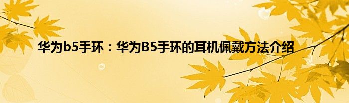现在大家使用手机的频率越来越频繁,手机也为我们提供了许多的便利,今天小编也来说一下这个华为b5手环:华为B5手环的耳机佩戴方法介绍相关的文章,这个操作其实不复杂,接下来就给大家介绍一下华为b5手环:华为B5手环的耳机佩戴方法介绍,一起来看看吧: