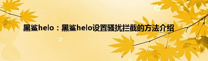 现在大家使用手机的频率越来越频繁,手机也为我们提供了许多的便利,今天小编也来说一下这个黑鲨helo:黑鲨helo设置骚扰拦截的方法介绍相关的文章,这个操作其实不复杂,接下来就给大家介绍一下黑鲨helo:黑鲨helo设置骚扰拦截的方法介绍,一起来看看吧: