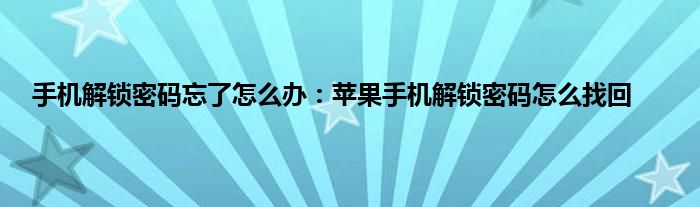 现在大家使用手机的频率越来越频繁,手机也为我们提供了许多的便利,今天小编也来说一下这个手机解锁密码忘了怎么办:苹果手机解锁密码怎么找回相关的文章,这个操作其实不复杂,接下来就给大家介绍一下手机解锁密码忘了怎么办:苹果手机解锁密码怎么找回,一起来看看吧: