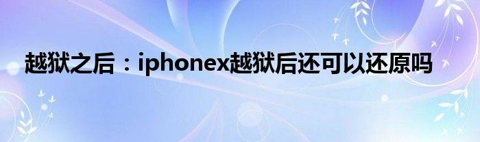 现在大家使用手机的频率越来越频繁,手机也为我们提供了许多的便利,今天小编也来说一下这个越狱之后:iphonex越狱后还可以还原吗相关的文章,这个操作其实不复杂,接下来就给大家介绍一下越狱之后:iphonex越狱后还可以还原吗,一起来看看吧: