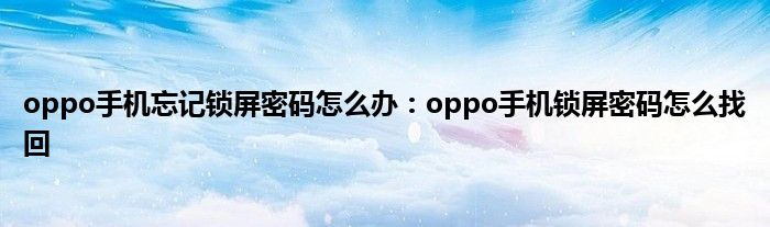 现在大家使用手机的频率越来越频繁,手机也为我们提供了许多的便利,今天小编也来说一下这个oppo手机忘记锁屏密码怎么办:oppo手机锁屏密码怎么找回相关的文章,这个操作其实不复杂,接下来就给大家介绍一下oppo手机忘记锁屏密码怎么办:oppo手机锁屏密码怎么找回,一起来看看吧: