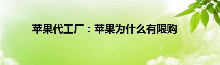 现在大家使用手机的频率越来越频繁,手机也为我们提供了许多的便利,今天小编也来说一下这个苹果代工厂:苹果为什么有限购相关的文章,这个操作其实不复杂,接下来就给大家介绍一下苹果代工厂:苹果为什么有限购,一起来看看吧:
