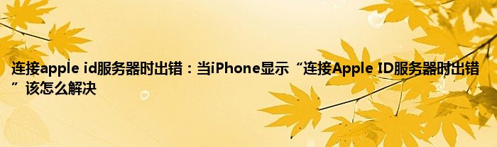 相信通过连接apple id服务器时出错:当iPhone显示“连接Apple ID服务器时出错”该怎么解决这篇文章能帮到你,在和好朋友分享的时候,也欢迎感兴趣小伙伴们一起来探讨。