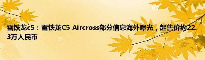 认为高端品牌往往体现在很多细节表现上,而不是产品定位高了他就高了,或许在其他细节上这款产品做得不错,唯一问题就是雪铁龙c5:雪铁龙C5 Aircross部分信息海外曝光,起售价约22.3万人民币品牌认知度上消费者还需要更多的去了解,希望这篇文章能够帮到你。