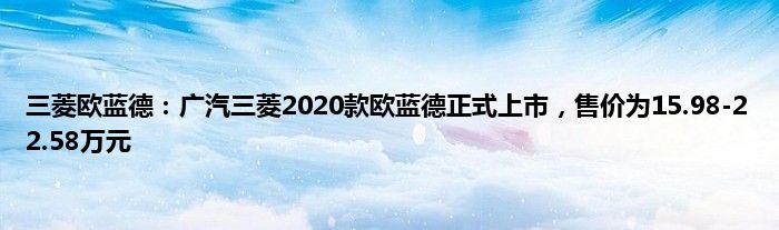 今天来分享一篇个人对三菱欧蓝德:广汽三菱2020款欧蓝德正式上市,售价为15.98-22.58万元相关分析,众所周知,无论是在坊间民众,还是在汽车媒体的议论中,都是不错的,至于产品到底香不香,通过测试还是可以对三菱欧蓝德:广汽三菱2020款欧蓝德正式上市,售价为15.98-22.58万元的产品力分析分析的,一起来看看吧: