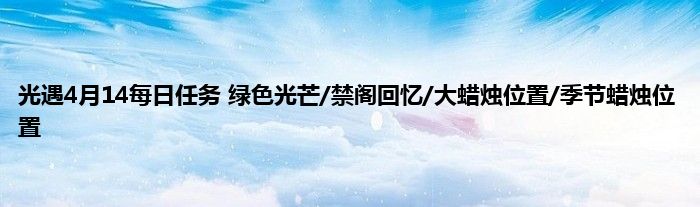 光遇4.14任务怎么做?很多玩家对于这个4.14的任务和大蜡烛的位置都不太清晰,不知道去哪里才干找到光芒为位置,很多玩家都想完每日任务快速找到绿色光芒,那么今天就让蚕豆小编为大家带来,光遇4月14日任务攻略汇总。