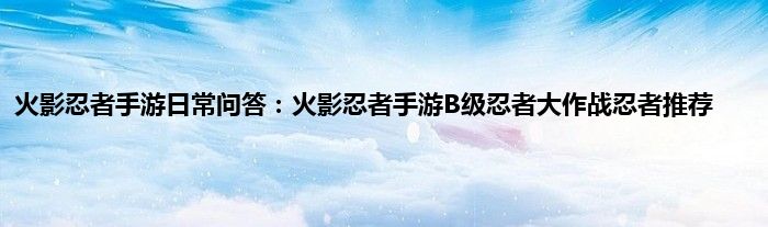 小编今天给各位玩家朋友们带来的是火影忍者手游日常问答:火影忍者手游B级忍者大作战忍者推荐,有记得的玩家朋友吗?不记得也没有关系,小编已经帮助大家把火影忍者手游日常问答:火影忍者手游B级忍者大作战忍者推荐找了出来,你只需要动动你的小手就可以轻松知道啦,快来瞧一瞧吧。