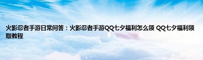 以上就是火影忍者手游日常问答:火影忍者手游QQ七夕福利怎么领,QQ七夕福利领取教程的推荐,相信通过火影忍者手游日常问答:火影忍者手游QQ七夕福利怎么领,QQ七夕福利领取教程这篇文章能帮到你,也欢迎对游戏很感兴趣小伙伴们一起来探讨。