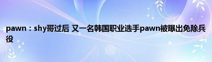 今天来聊聊关于pawn:shy哥过后,又一名韩国职业选手pawn被曝出免除兵役的文章,游戏是很多人的选择,但是游戏玩多了也会身心疲惫,现在就为大家来简单介绍下pawn:shy哥过后,又一名韩国职业选手pawn被曝出免除兵役,希望对各位小伙伴们有所帮助。