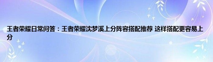 以上就是王者荣耀日常问答:王者荣耀沈梦溪上分阵容搭配推荐,这样搭配更容易上分的推荐,相信通过王者荣耀日常问答:王者荣耀沈梦溪上分阵容搭配推荐,这样搭配更容易上分这篇文章能帮到你,也欢迎对游戏很感兴趣小伙伴们一起来探讨。