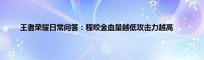 小编今天给各位玩家朋友们带来的是王者荣耀日常问答:程咬金血量越低攻击力越高,有记得的玩家朋友吗?不记得也没有关系,小编已经帮助大家把王者荣耀日常问答:程咬金血量越低攻击力越高找了出来,你只需要动动你的小手就可以轻松知道啦,快来瞧一瞧吧。