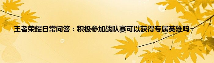 以上就是王者荣耀日常问答:积极参加战队赛可以获得专属英雄吗的推荐,相信通过王者荣耀日常问答:积极参加战队赛可以获得专属英雄吗这篇文章能帮到你,也欢迎对游戏很感兴趣小伙伴们一起来探讨。