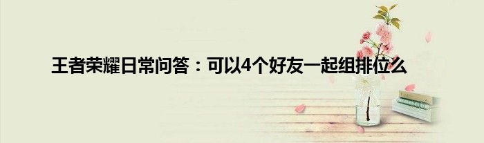 以上就是王者荣耀日常问答:可以4个好友一起组排位么的推荐,相信通过王者荣耀日常问答:可以4个好友一起组排位么这篇文章能帮到你,也欢迎对游戏很感兴趣小伙伴们一起来探讨。