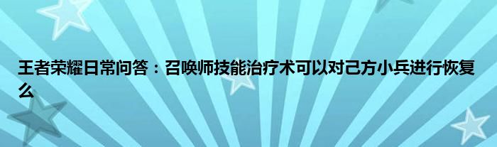 今天来聊聊关于王者荣耀日常问答:召唤师技能治疗术可以对己方小兵进行恢复么的文章,游戏是很多人的选择,但是游戏玩多了也会身心疲惫,现在就为大家来简单介绍下王者荣耀日常问答:召唤师技能治疗术可以对己方小兵进行恢复么,希望对各位小伙伴们有所帮助。