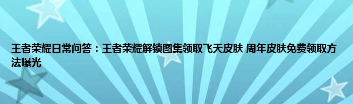 以上就是王者荣耀日常问答:王者荣耀解锁图集领取飞天皮肤,周年皮肤免费领取方法曝光的推荐,相信通过王者荣耀日常问答:王者荣耀解锁图集领取飞天皮肤,周年皮肤免费领取方法曝光这篇文章能帮到你,也欢迎对游戏很感兴趣小伙伴们一起来探讨。
