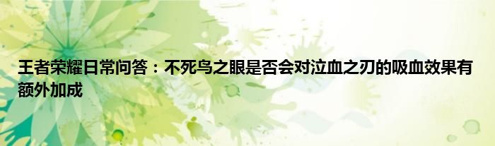 今天来聊聊关于王者荣耀日常问答:不死鸟之眼是否会对泣血之刃的吸血效果有额外加成的文章,游戏是很多人的选择,但是游戏玩多了也会身心疲惫,现在就为大家来简单介绍下王者荣耀日常问答:不死鸟之眼是否会对泣血之刃的吸血效果有额外加成,希望对各位小伙伴们有所帮助。