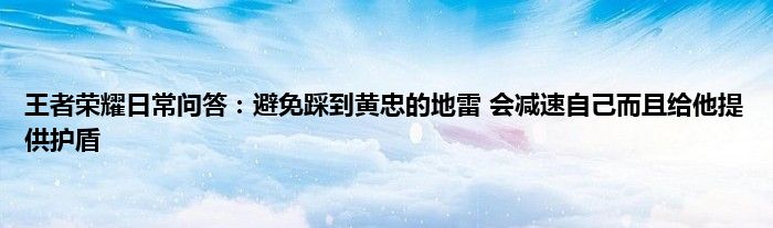 小编今天给各位玩家朋友们带来的是王者荣耀日常问答:避免踩到黄忠的地雷,会减速自己而且给他提供护盾,有记得的玩家朋友吗?不记得也没有关系,小编已经帮助大家把王者荣耀日常问答:避免踩到黄忠的地雷,会减速自己而且给他提供护盾找了出来,你只需要动动你的小手就可以轻松知道啦,快来瞧一瞧吧。