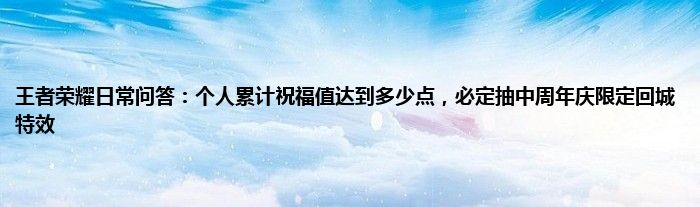 以上就是王者荣耀日常问答:个人累计祝福值达到多少点,必定抽中周年庆限定回城特效的推荐,相信通过王者荣耀日常问答:个人累计祝福值达到多少点,必定抽中周年庆限定回城特效这篇文章能帮到你,也欢迎对游戏很感兴趣小伙伴们一起来探讨。