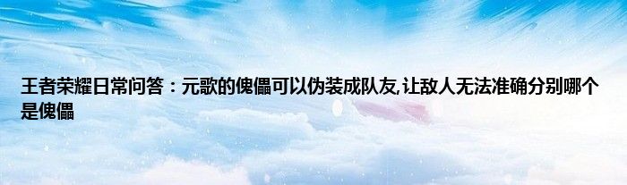 今天来聊聊关于王者荣耀日常问答:元歌的傀儡可以伪装成队友,让敌人无法准确分别哪个是傀儡的文章,游戏是很多人的选择,但是游戏玩多了也会身心疲惫,现在就为大家来简单介绍下王者荣耀日常问答:元歌的傀儡可以伪装成队友,让敌人无法准确分别哪个是傀儡,希望对各位小伙伴们有所帮助。