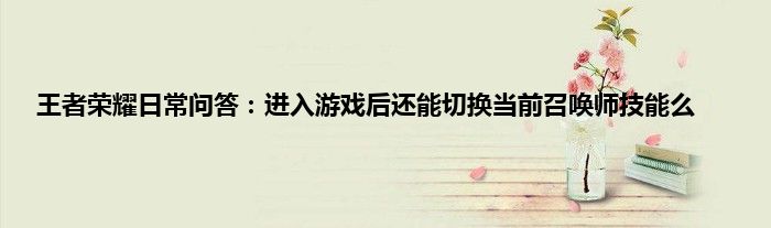 以上就是王者荣耀日常问答:进入游戏后还能切换当前召唤师技能么的推荐,相信通过王者荣耀日常问答:进入游戏后还能切换当前召唤师技能么这篇文章能帮到你,也欢迎对游戏很感兴趣小伙伴们一起来探讨。
