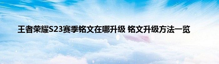 王者荣耀S23新赛季开启后,大厅铭文升级的位置入口发生了变化,很多玩家想要升级铭文却找不到升级铭文的入口,因此很多玩家想知道王者荣耀S23铭文升级在哪里?蚕豆小编为您带来王者荣耀S23铭文升级位置。