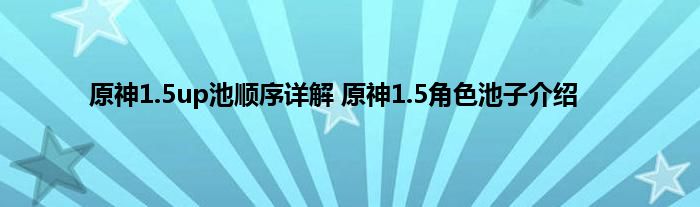 原神1.5up池顺序详解,原神1.5版本马上上线,目前剧情已经推进到了第一章的最终阶段,1.5马上带来全新的内容和角色,此外up池的顺序已经有了爆料,各位仓鼠党可以准备好抽取自己想要的角色了,下面就来一起看看up池的顺序。