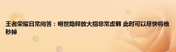 问题:明世隐释放大招非常虚弱,此时可以尽快将他秒掉?