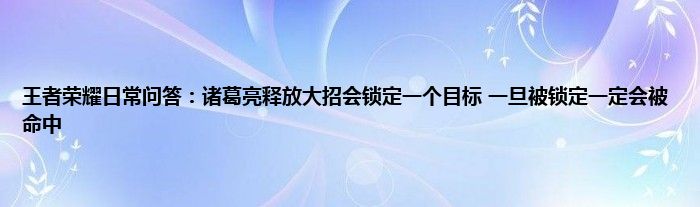 问题:诸葛亮释放大招会锁定一个目标,一旦被锁定一定会被命中?