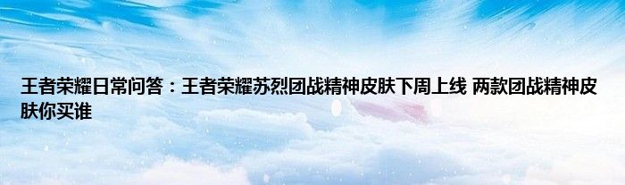 小编今天给各位玩家朋友们带来的是王者荣耀日常问答:王者荣耀苏烈团战精神皮肤下周上线,两款团战精神皮肤你买谁,有记得的玩家朋友吗?不记得也没有关系,小编已经帮助大家把王者荣耀日常问答:王者荣耀苏烈团战精神皮肤下周上线,两款团战精神皮肤你买谁找了出来,你只需要动动你的小手就可以轻松知道啦,快来瞧一瞧吧。
