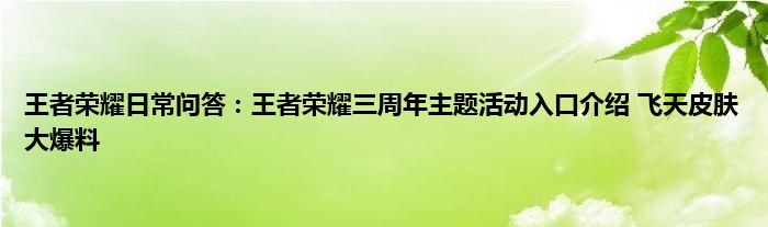 以上就是王者荣耀日常问答:王者荣耀三周年主题活动入口介绍,飞天皮肤大爆料的推荐,相信通过王者荣耀日常问答:王者荣耀三周年主题活动入口介绍,飞天皮肤大爆料这篇文章能帮到你,也欢迎对游戏很感兴趣小伙伴们一起来探讨。