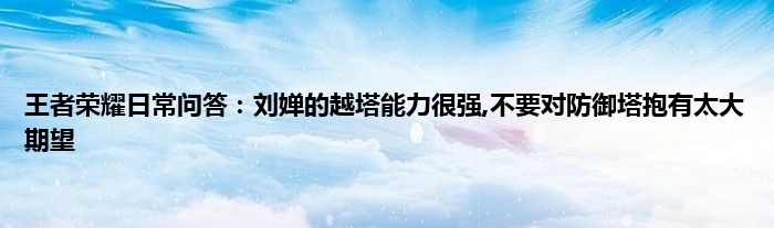 今天来聊聊关于王者荣耀日常问答:刘婵的越塔能力很强,不要对防御塔抱有太大期望的文章,游戏是很多人的选择,但是游戏玩多了也会身心疲惫,现在就为大家来简单介绍下王者荣耀日常问答:刘婵的越塔能力很强,不要对防御塔抱有太大期望,希望对各位小伙伴们有所帮助。
