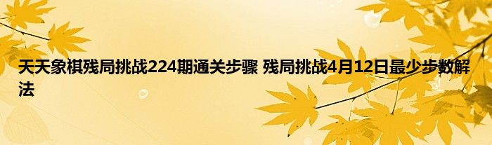 天天象棋残局挑战224期怎么过?天天象棋残局挑战每周都会更新,目前最新更新的关卡是224期,这次的残局挑战也是比较难的,而想要以最少的步数通关,还需要电脑的配合。那么具体的走法是什么呢?这里就带来了详细的内容解读,还没通关的玩家来看看吧。