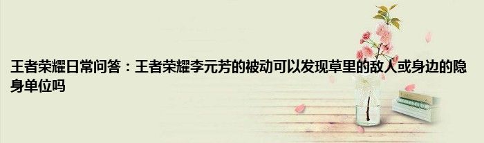 李元芳的被动可以发现草里的敌人或身边的隐身单位?