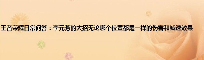 李元芳的大招有持续伤害,无论哪个位置都是一样的伤害和减速效果?