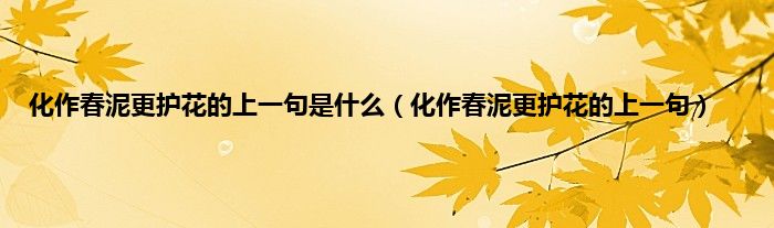 大家好,小科来为大家解答以上问题。化作春泥更护花的上一句是什么,化作春泥更护花的上一句很多人还不知道,现在让我们一起来看看吧!