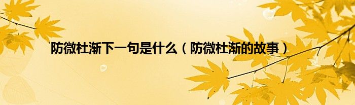 大家好,小科来为大家解答以上问题。防微杜渐下一句是什么,防微杜渐的故事很多人还不知道,现在让我们一起来看看吧!