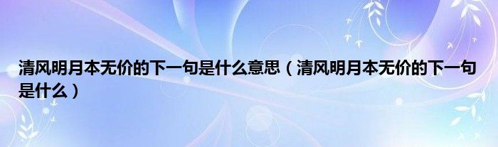大家好,小科来为大家解答以上问题。清风明月本无价的下一句是什么意思,清风明月本无价的下一句是什么很多人还不知道,现在让我们一起来看看吧!