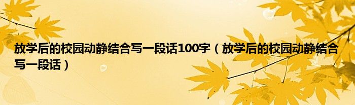 大家好,小科来为大家解答以上问题。放学后的校园动静结合写一段话100字,放学后的校园动静结合写一段话很多人还不知道,现在让我们一起来看看吧!