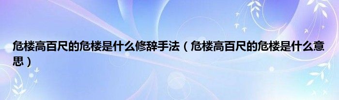 大家好,小科来为大家解答以上问题。危楼高百尺的危楼是什么修辞手法,危楼高百尺的危楼是什么意思很多人还不知道,现在让我们一起来看看吧!